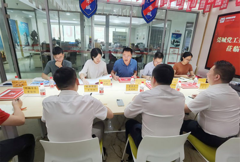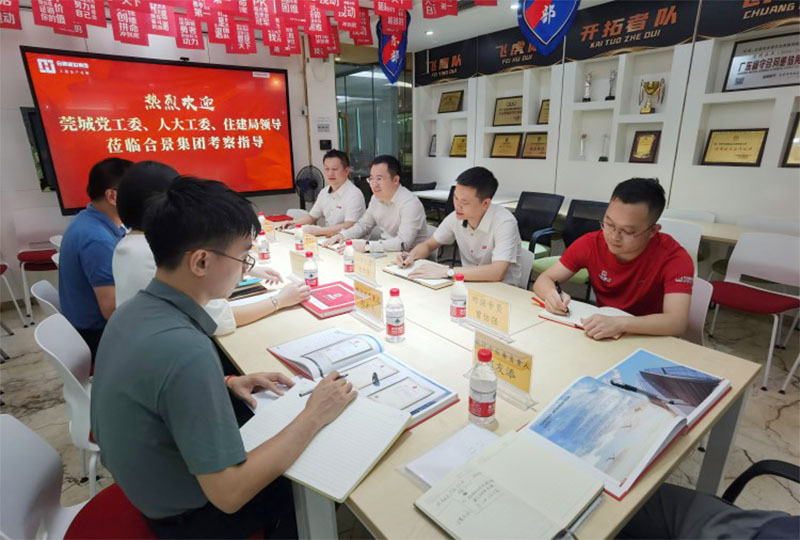9月20日上午,莞城區黨工委委員盧毅、人大工委副主任張慶君、住建局局長朱藝科等一行6人蒞臨我公司考察交流。集團公司董事長朱紹群、副總麥偉強、財務總監方曉嵐、營銷部負責人雷挺等陪同。