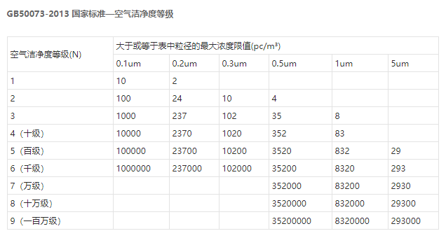 空氣潔凈度等級(air cleanliness class):潔凈空間單位體積空氣中,以大于或等于被考慮粒徑的粒子最大濃度限值進行劃分的等級標準。國內按空態、靜態、動態對無塵車間進行測試、驗收,符合《GB50073-2013 潔凈廠房設計規范》、《GB50591-2010 潔凈室施工及驗收規范》。