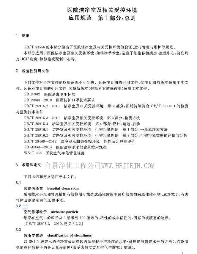 醫(yī)院潔凈室及相關(guān)受控環(huán)境應(yīng)用規(guī)范(GB/T33556.1-2017)全文完整版