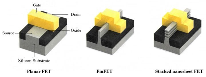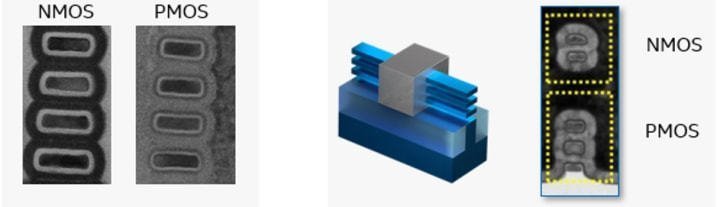晶體管的最小的結構寬度在22nm之前,通常是柵極寬度,被稱為特征尺寸。隨著晶體管面積的日益縮小,特征尺寸和廠家的命名逐漸脫節,而柵極寬度也不再是晶體管的最小結構寬度,例如在FinFET中,Fin的寬度通常是小于柵極寬度的,在GAA堆疊納米片晶體管中,納米片的厚度也是要小于柵極寬度的。